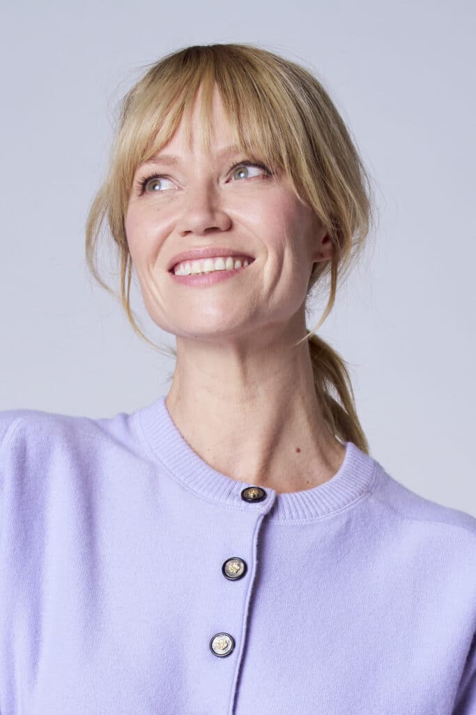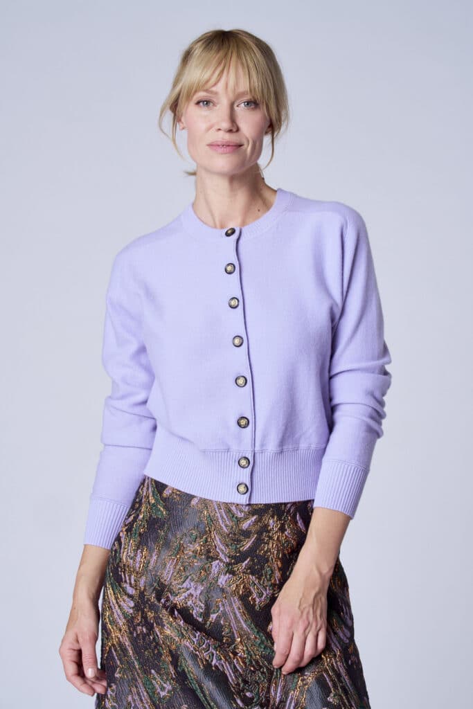 This soft cardigan in a fresh lilac shade is the perfect layering piece for everyday wear. The luxurious gold buttons add a feminine, refined finish. Thanks to the slightly relaxed fit and stretchy knit, comfort is guaranteed. A stylish favorite that looks beautiful over a dress, blouse, or T-shirt.