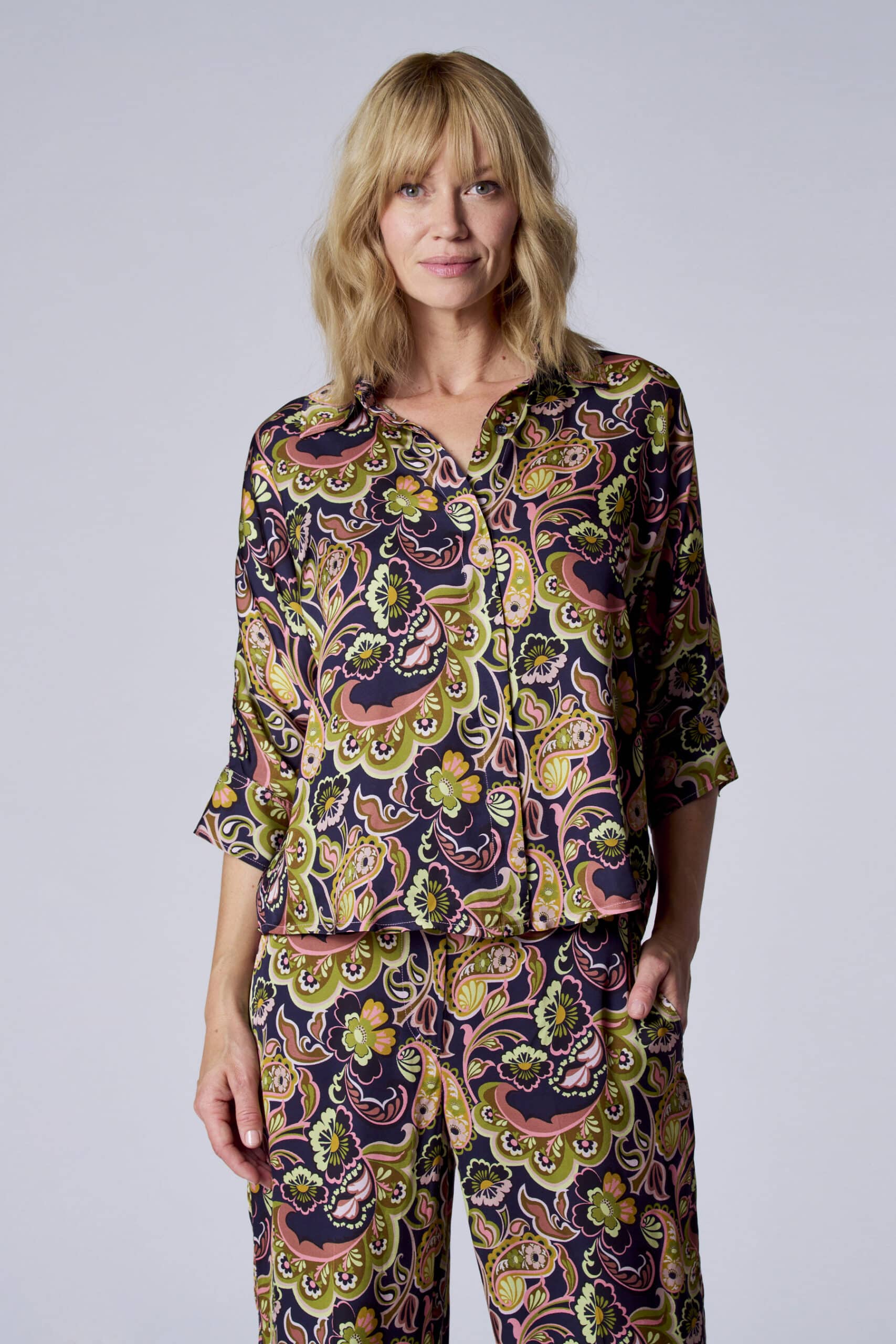 An airy blouse in a colorful retro floral print. The soft fabric and short sleeve ensure a comfortable fit. Ideal for giving your outfit an instant cheerful, stylish boost.