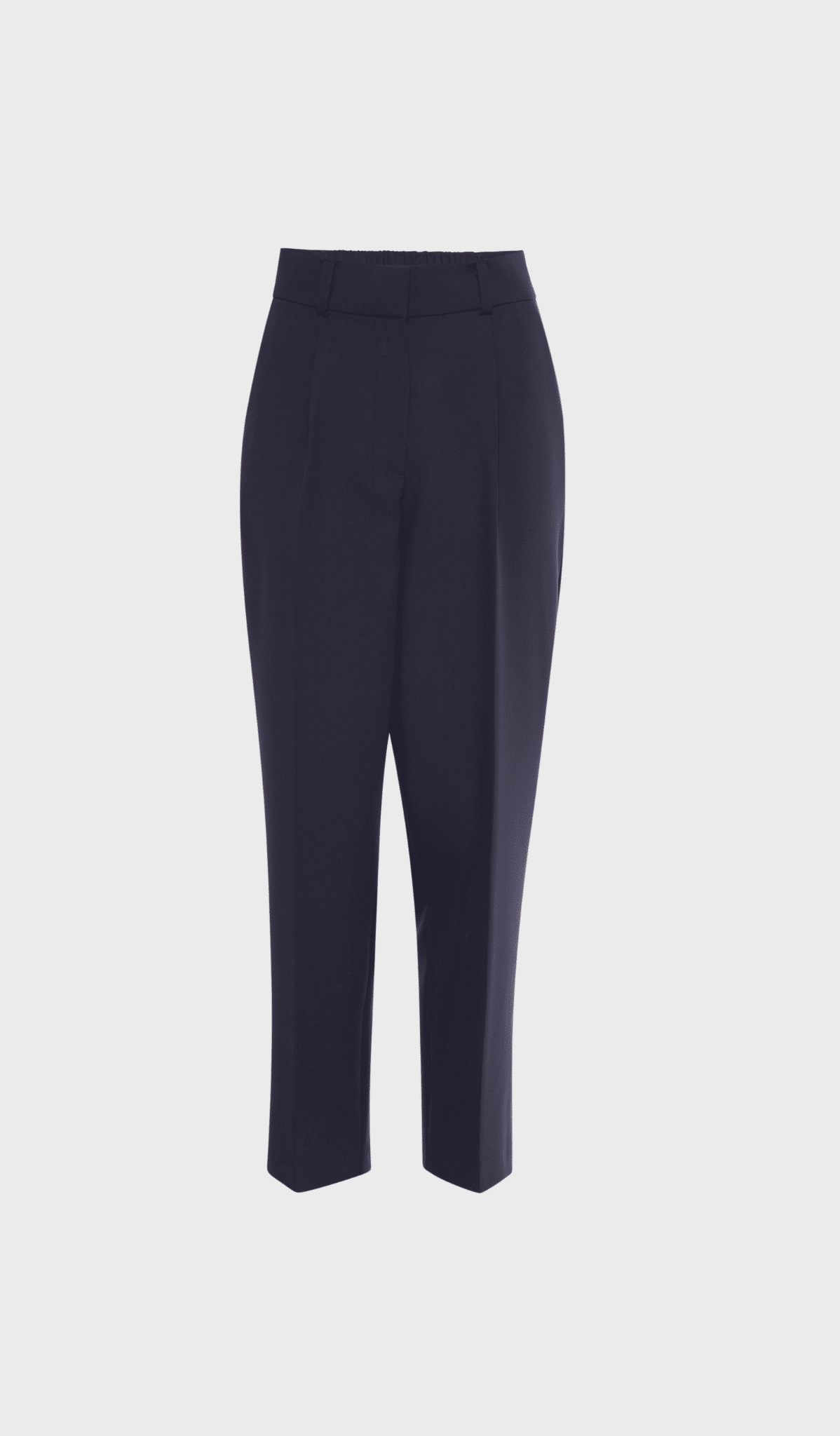These dark blue, perfectly tailored trousers are a true wardrobe classic. The subtle crease and elegant lines create a streamlined silhouette. Thanks to the combination of comfort and sophistication, they are an ideal choice for both the office and more formal occasions. Timeless, versatile, and indispensable.