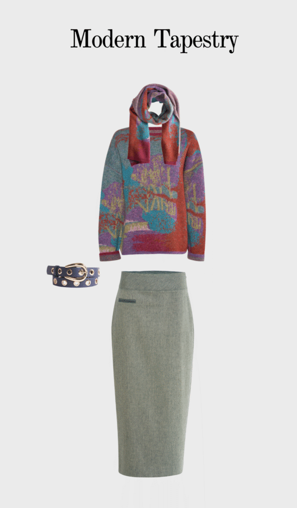 A stylish, minimalist pencil skirt in a soft grey-green shade. The subtle texture and clean design make this a versatile piece that can be worn both for business and casual occasions. Pair it with a blouse for an elegant look, or with knitwear for a soft, modern style.