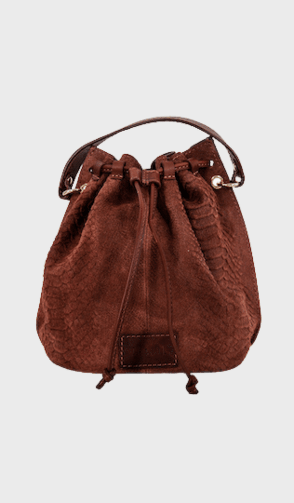 BELIEVE by DétaiL is a brown chestnut leather bag with anaconda patterned detail. Wear it also as a statement backpack. Elevate your outfit to the next level of stylish with this bag.