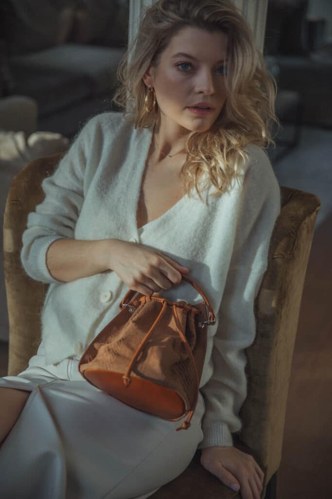 BELIEVE by DétaiL is a brown cognac leather bag with anaconda patterned detail. Wear it also as a statement backpack. Elevate your outfit to the next level of stylish with this bag.