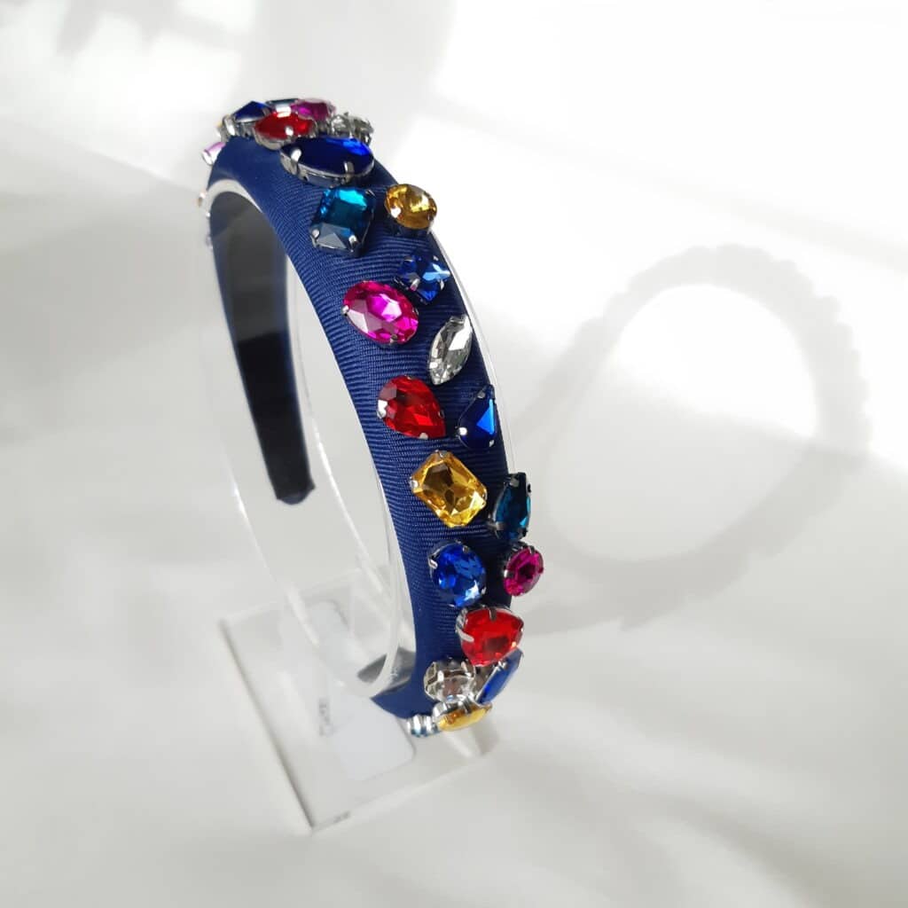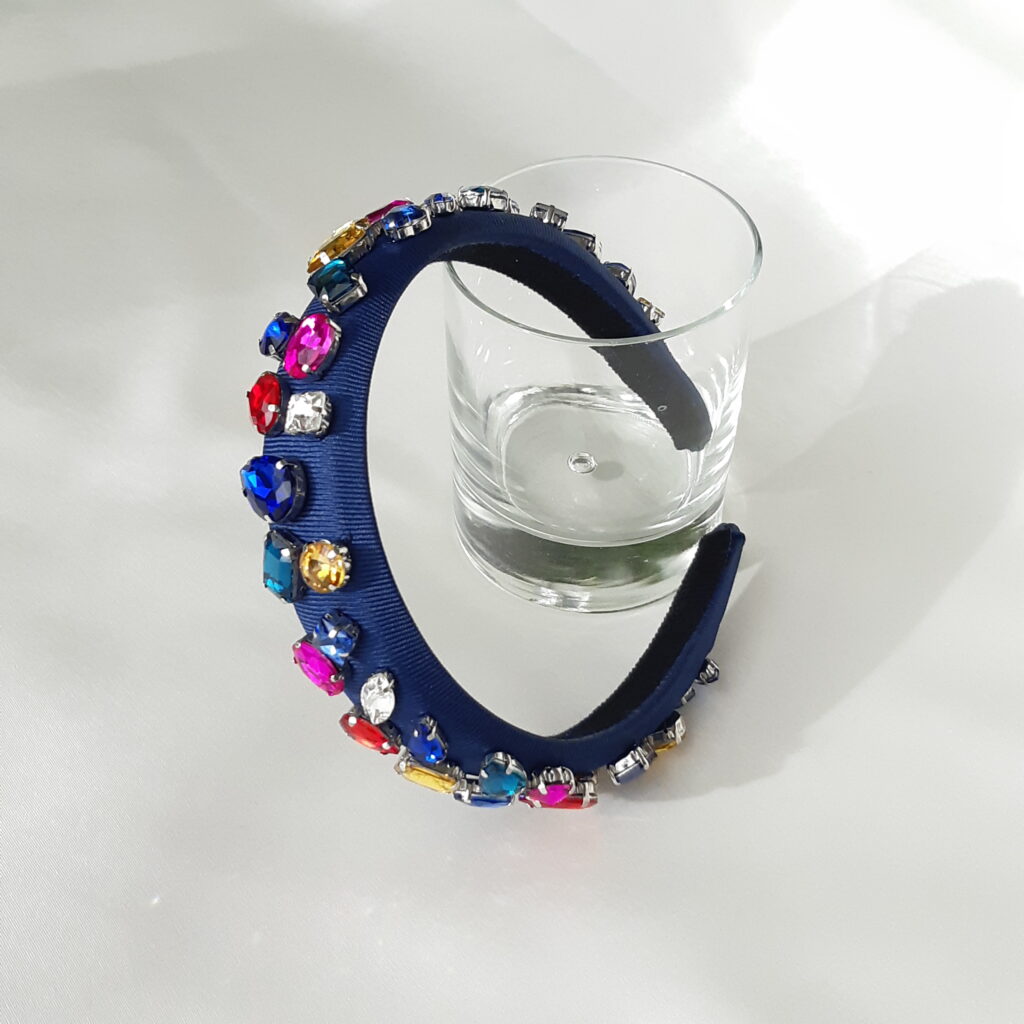 Blue satin headband with Swarovski crystals