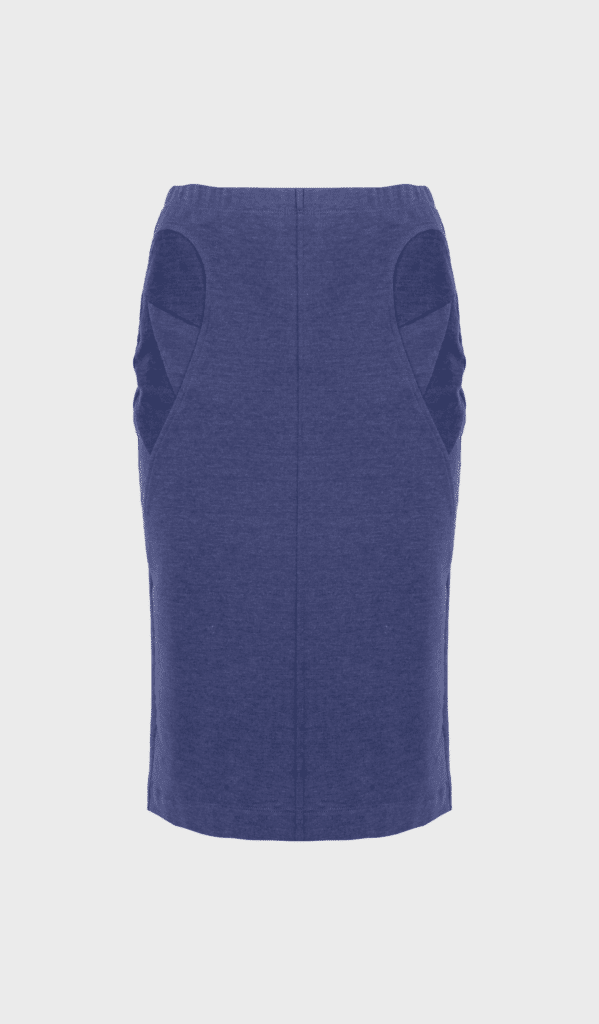 Crystal Clear Velvet skirt by ABELONE WILHELMSEN is a dreamy blue colored skirt. This urban skirt emphasizes your female body. The Crystal Clear detail reveals the fabric’s contrast shades of light and shadow. Every day styled with sneakers, boots, or sandals, – just have you feel its best fits your day! Topstitched detail at front.