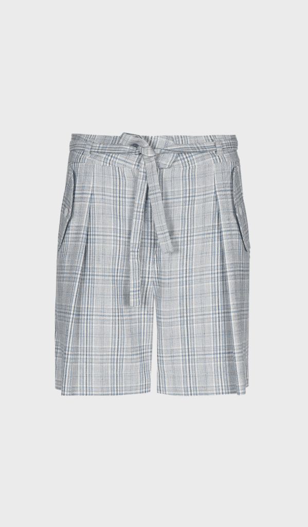 Take on the classic look with these Evelyn shorts in checkered blue-grey-white tones. They also come with an adjustable belt to fit perfectly.