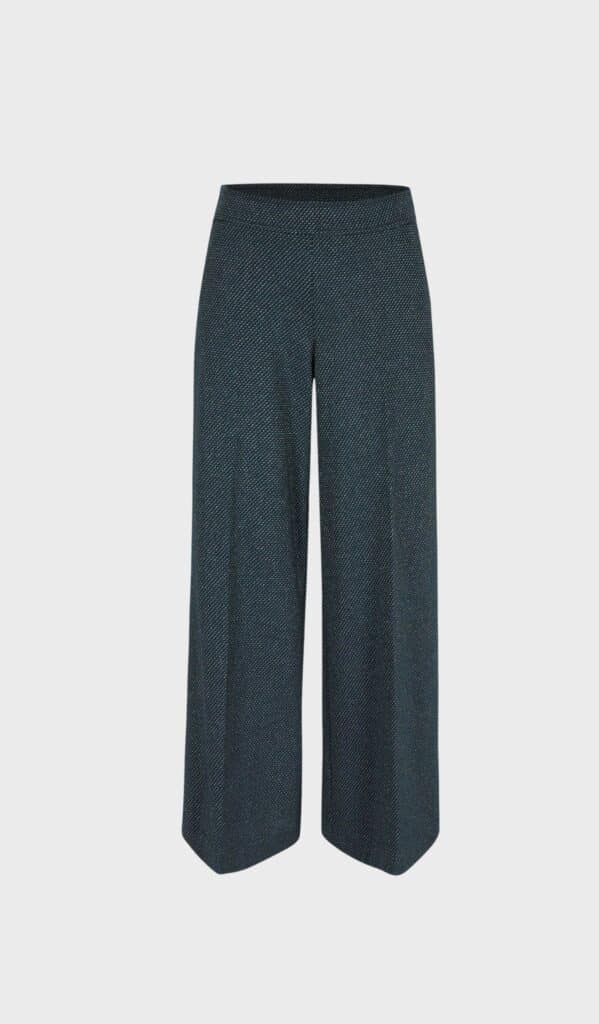 HOLLY by Hampton Bays is a dark blue-green fabric with a subtle glitter thread. Straight-leg cut in a fluid material, with an elastic waistband at the back for extra comfort. Stylish on their own, but extra chic when paired with the matching blazer.