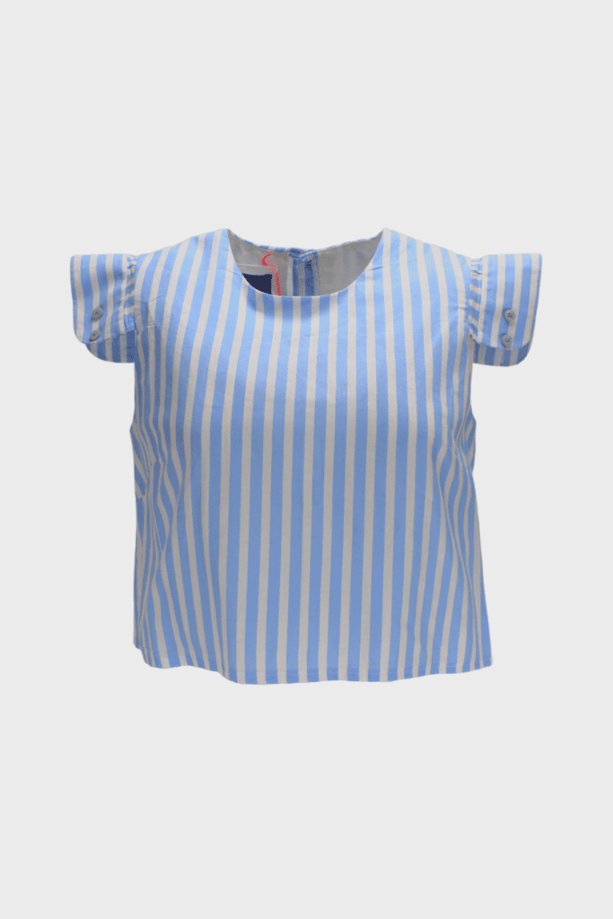 The MAGNOLIA top is a crop top made out of a men’s shirt. The button-down closure is found on the back. In the front, there are bust darts for a fitted style. The cuffs of the shirt are used to make the remarkable, capped sleeves, which resemble the bowl- en star-shaped flowers of the Magnolia.