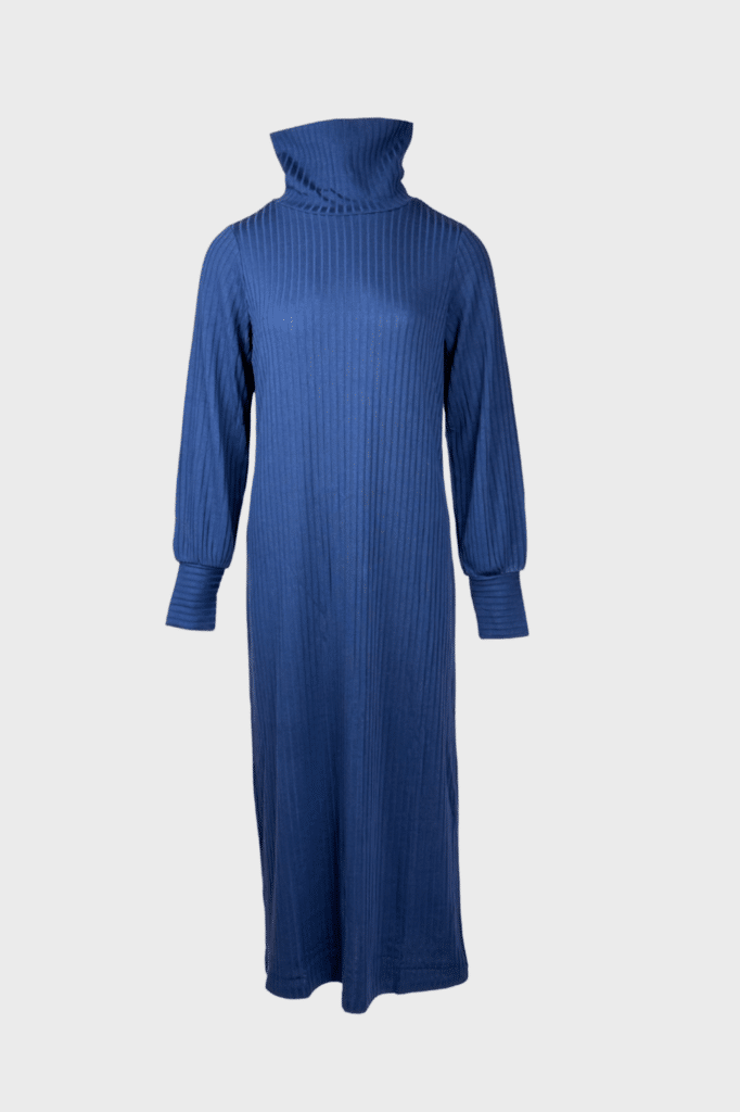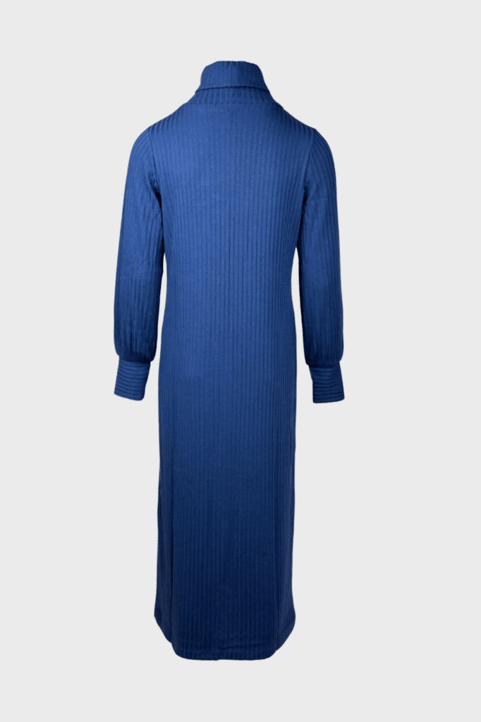 Long-sleeve ribbed midi dress with a hooded neckline.