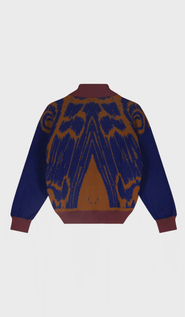 The NOCTUA bomber is knitted from 100% extra-fine merino wool and feels soft and cozily warm. The playful color blocks and the subtle motif on the back, inspired by moth wings, give the bomber a unique look. Its relaxed fit makes this bomber comfortable and versatile. You can wear it as a sweater or, on cooler days, over a light sweatshirt.