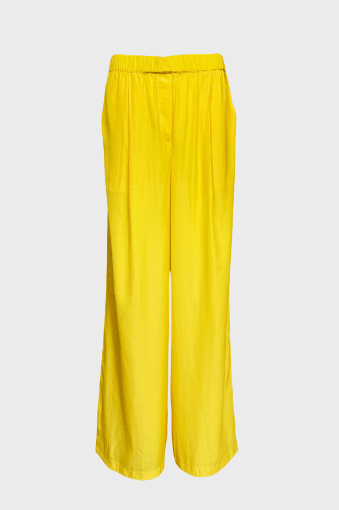 Yellow wide-leg trousers with a flowing fit, elastic waistband, and lightweight fabric.