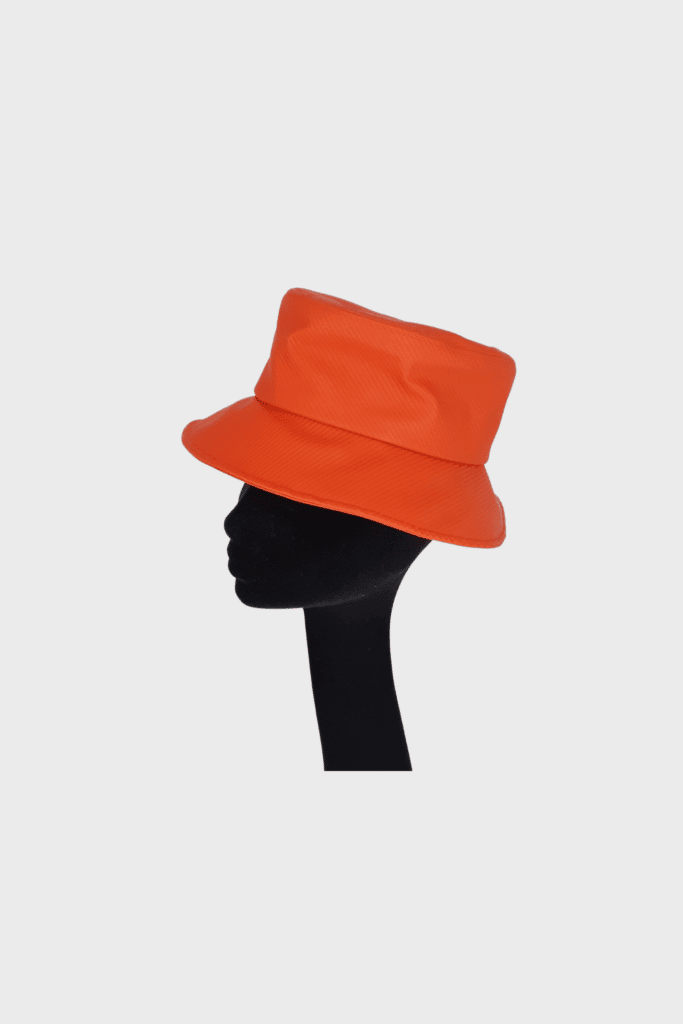 Rain hat in red with rib and silk lining by Cap’a di Carina.
