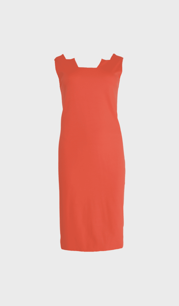 Reversible Dress by EVA Schalckens is a white and coral reversible dress in stretch Cotton with geometrical neckline.