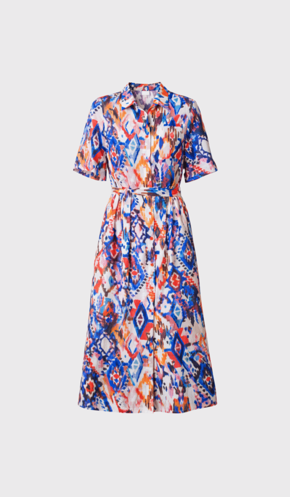 Stylish and versatile button-down dress with splits in the side seams and pockets. This dress comes with a loose belt and has a reversible and removable collar. The back of the collar is made in royal blue linen/viscose. You can wear this dress in many different ways: with or without the belt, closed or open, with the collar reversed or removed, it’s up to you!