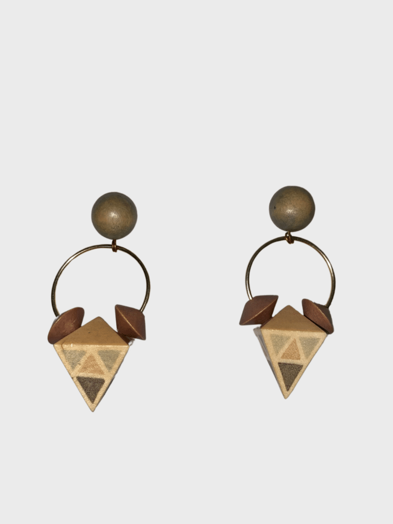 Shapy Drop Earrings by LIVE TO EXPRESS is a playful and graceful pair of drop earrings. The beads of these authentic 90s earrings are made out of wood. The earrings have a push-back closing.