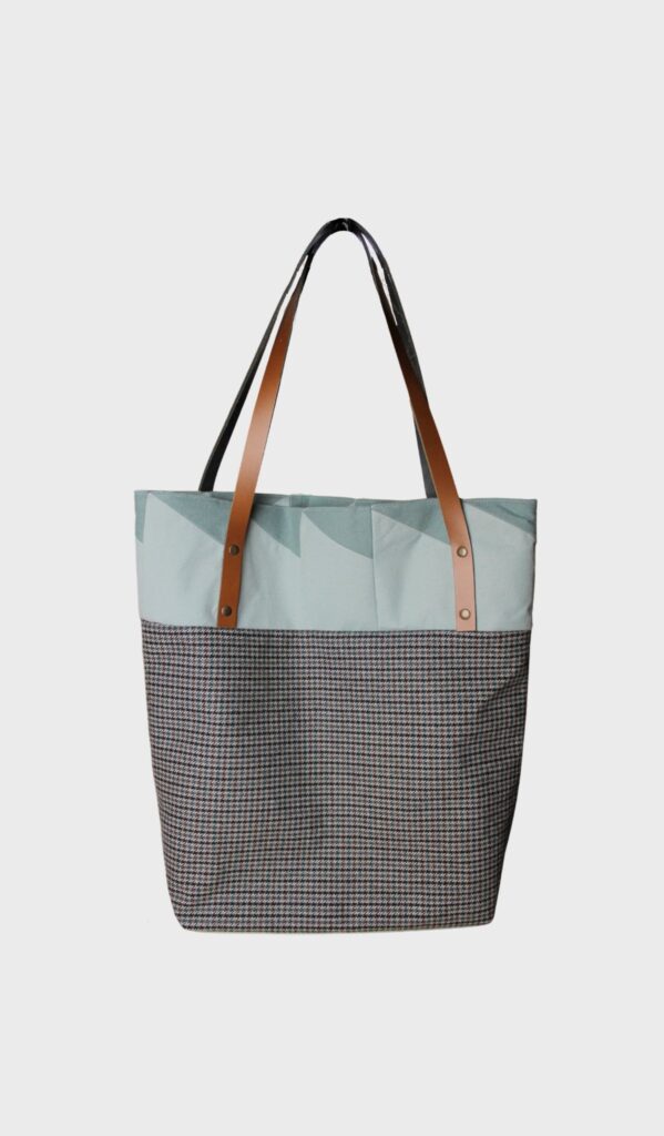 Large bag with leather handles. Fully lined and with storage pockets inside and buckle for keys.