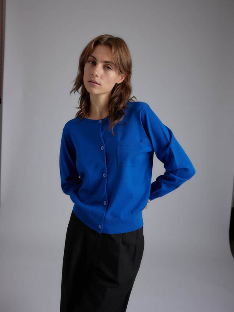Long sleeves, Round neck, Shell button closure, back ribs detail, Front pocket at the upper left chest level.
