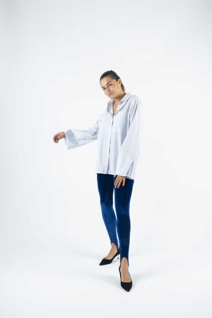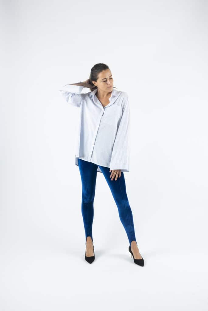 Slim high waist leggings with pin tucks and a stirrup detailing at the cuffs.