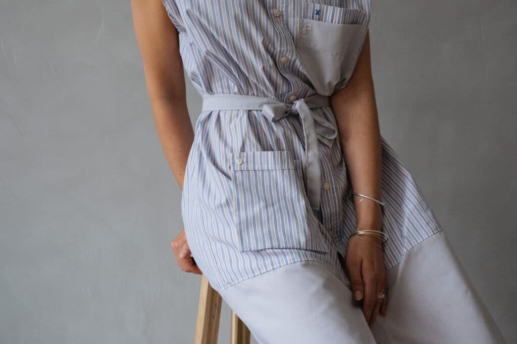 Each renēe is unique. We try to use almost everything from the existing shirts. The leftovers are saved and with that we make a new piece of clothing, mouth masks, scarves, small bags…