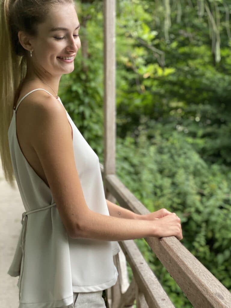 -Top with deep side cut-out with bandeau to wear under