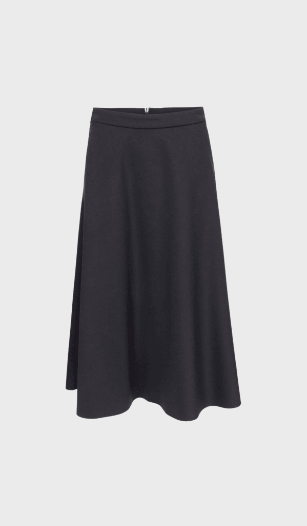 The Tuba is a black midi, a-line skirt with a soft and comfortable material.