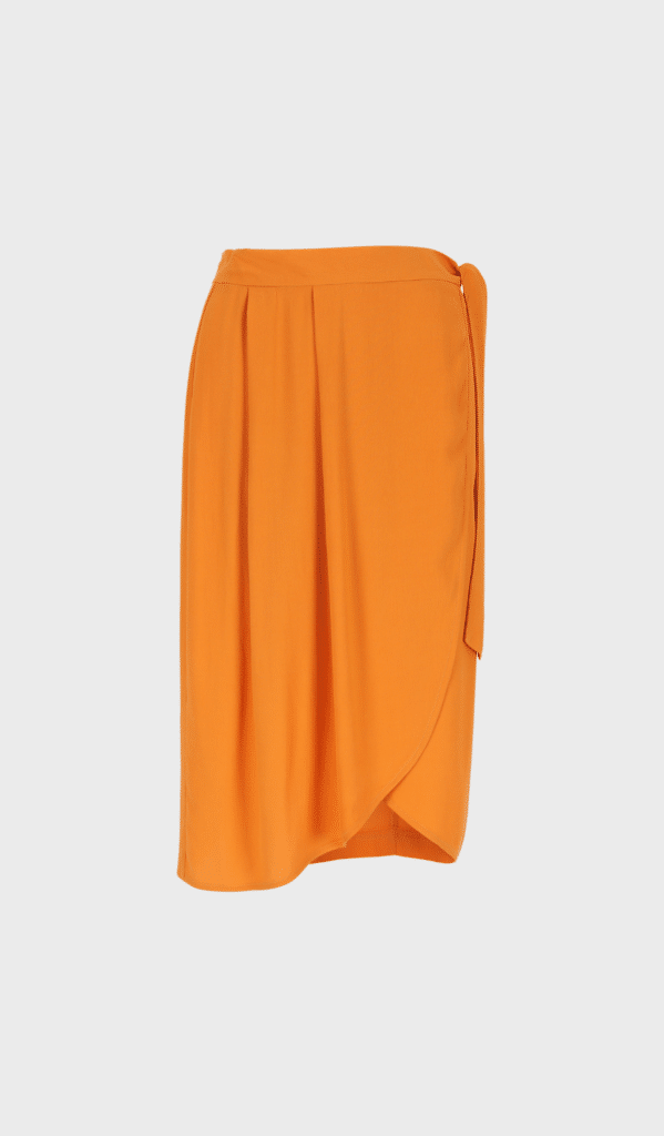 This elegant wrap skirt is a summer must-have! Wear it with a summer top or blouse, with heels, sandals or sneakers and you’re good to go. The skirt closes with a button on one side and with a knot on the other.